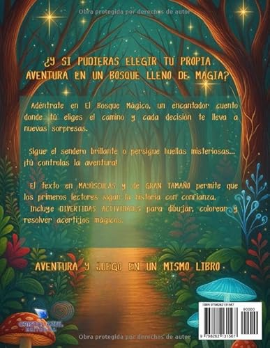 Perfecto para niños de 5 años, EL BOSQUE MÁGICO ofrece una narrativa envolvente que mantiene a los pequeños lectores emocionados mientras eligen qué camino seguir en su aventura. Cada decisión que toman influye en el desarrollo de la historia, lo que les da un sentido de empoderamiento y participación. Este enfoque interactivo, además, fomenta el desarrollo de habilidades cognitivas, ya que los niños aprenden a pensar en las consecuencias de sus elecciones.